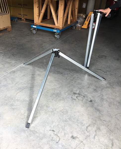 Folding tripod for poles up to 50 mm diameter. Favorable quantity price from remaining stock.