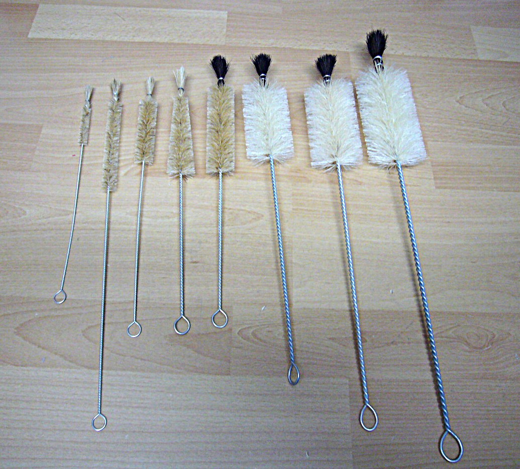 Suitable for effective dry cleaning. The bottle brushes up to 60 mm can also be used for wet cleaning. The white tuft of wool at the tip of the bottle brushes and the rounded shape of the large brushes also simplifies and enables cleaning of the tops of cores. For some situations, these bottle brushes are also desired instead of the tufts of wool with a brush at the tip. As an alternative, there is also a range of 8 pieces from 10 - 60 mm with slightly different fill and overall lengths and brushes at the tip. However, these brushes with the brushes are not available in a replacement range.