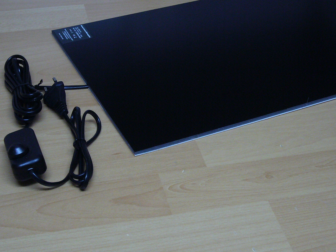 La plaque chauffante proprement dite, d'une épaisseur de seulement 7 mm environ, se prête également bien à une utilisation sur une plaque de support plus grande, fabriquée par un spécialiste et adaptée à l'environnement, car notre plaque chauffante préfabriquée peut également être livrée sans la plaque de support de même taille et d'une épaisseur de 15 mm (cat. B5823X). Dans ce cas, il faut toutefois s'assurer que la plaque de support est adaptée en termes de stabilité et d'aspect. L'utilisation d'un élément chauffant de seulement 7 mm d'épaisseur n'est pas autorisée ! Vous trouverez un produit fini de ce type sous "Panneau chauffant infrarouge vertical". La couche de séparation de l'élément chauffant est recouverte d'un film autocollant épais et peut donc être collée durablement sur une surface lisse et sans poussière, dont elle ne dépasse que de 7 mm environ. Veuillez toutefois noter qu'en cas d'utilisation de ce type, il n'est normalement pas possible de le décoller ultérieurement de la plaque de support.