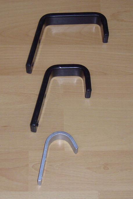 Eckige schwere Haken mit schwarzem Kunststoff überzogen für übergreifendes Einhängen bis 100 mm.